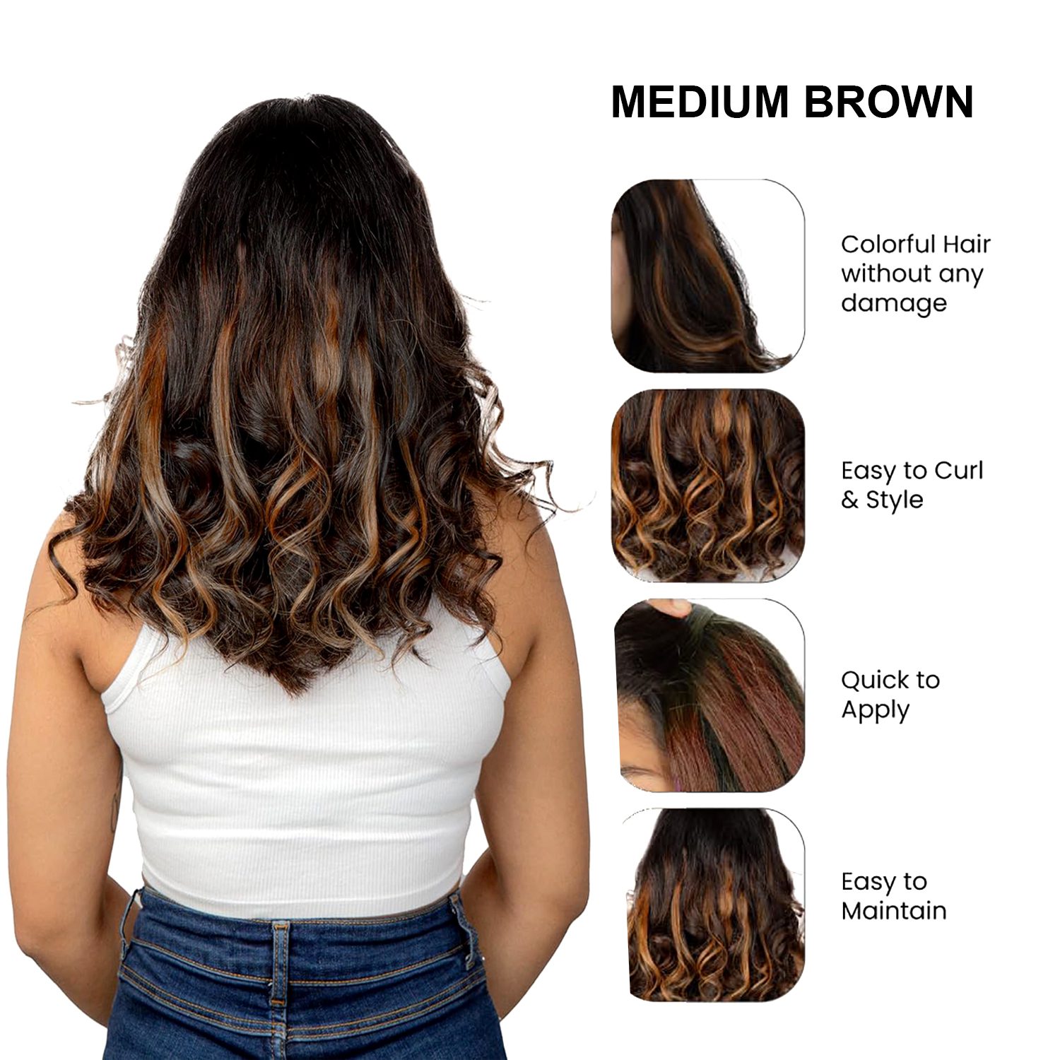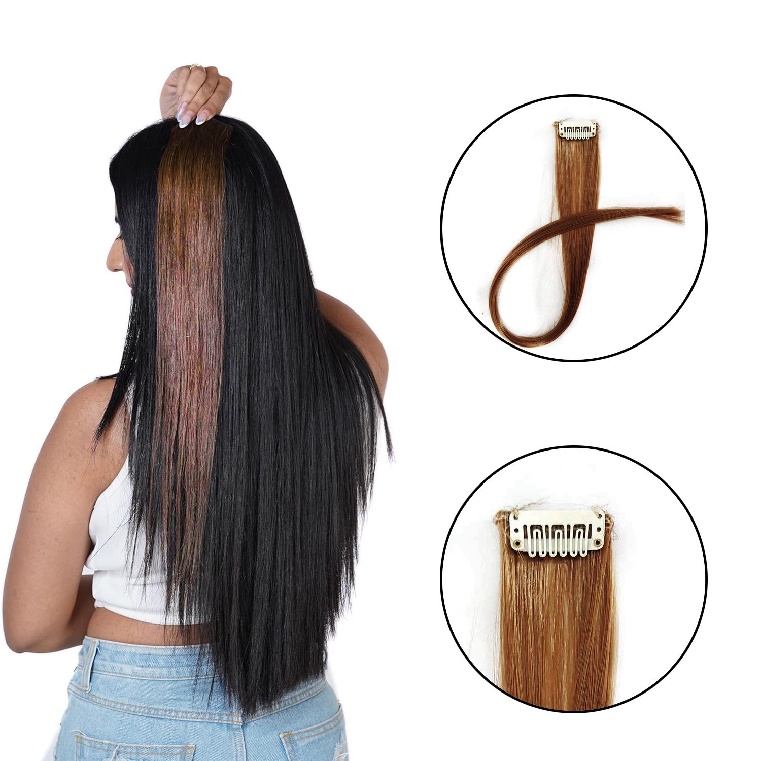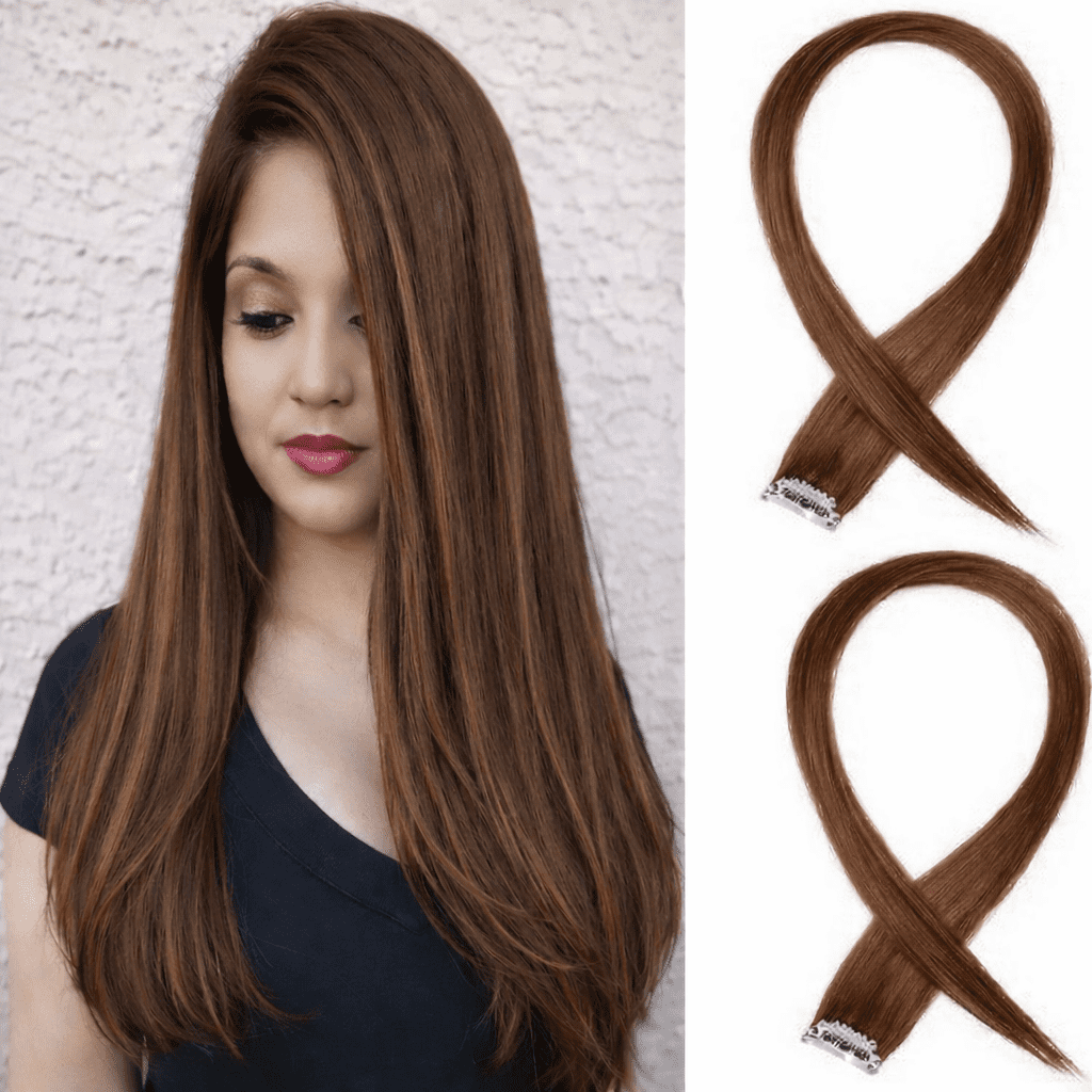 100% Indian Natural Human Clip In Color Streaks For Women “Medium Brown” Single Clip Hair Extension