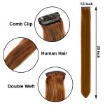 About this item, Copper, Ginger Soft, luxurious hair streaks for a burst of color 1 hair streaks per set, 14 inches in length streak is 1 inch wide with one clip to help achieve a natural highlighted hair look 100% Human Hair – treat as your own; brush, curl, straighten, style. they are instant and can be fitted at home in a matter of minutes without help.