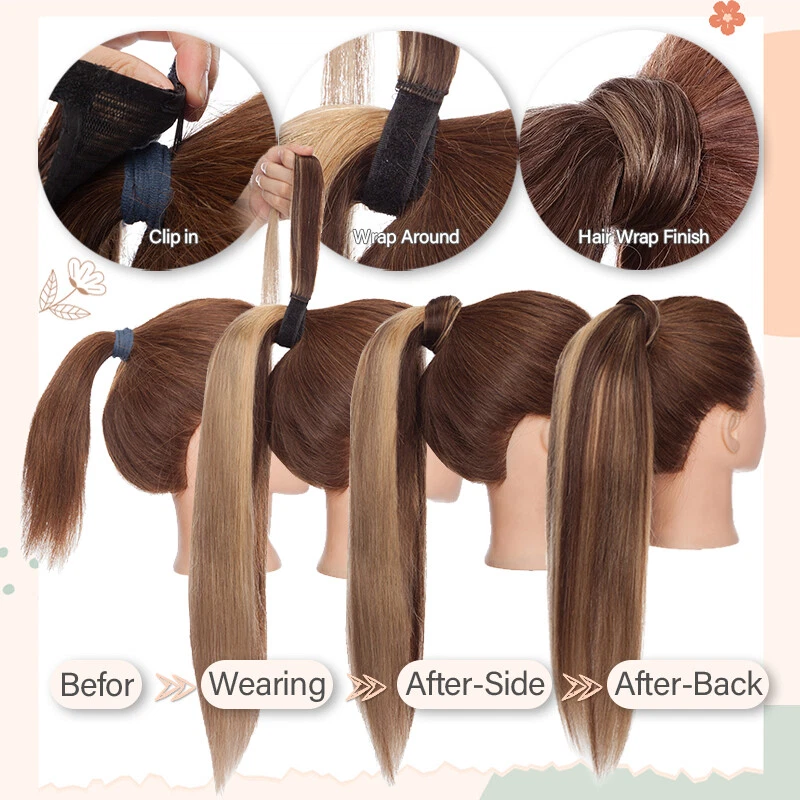 10inch, 100% Real Remy Human Hair Wrap Around Ponytail Extension With Wig Clip in/Thick