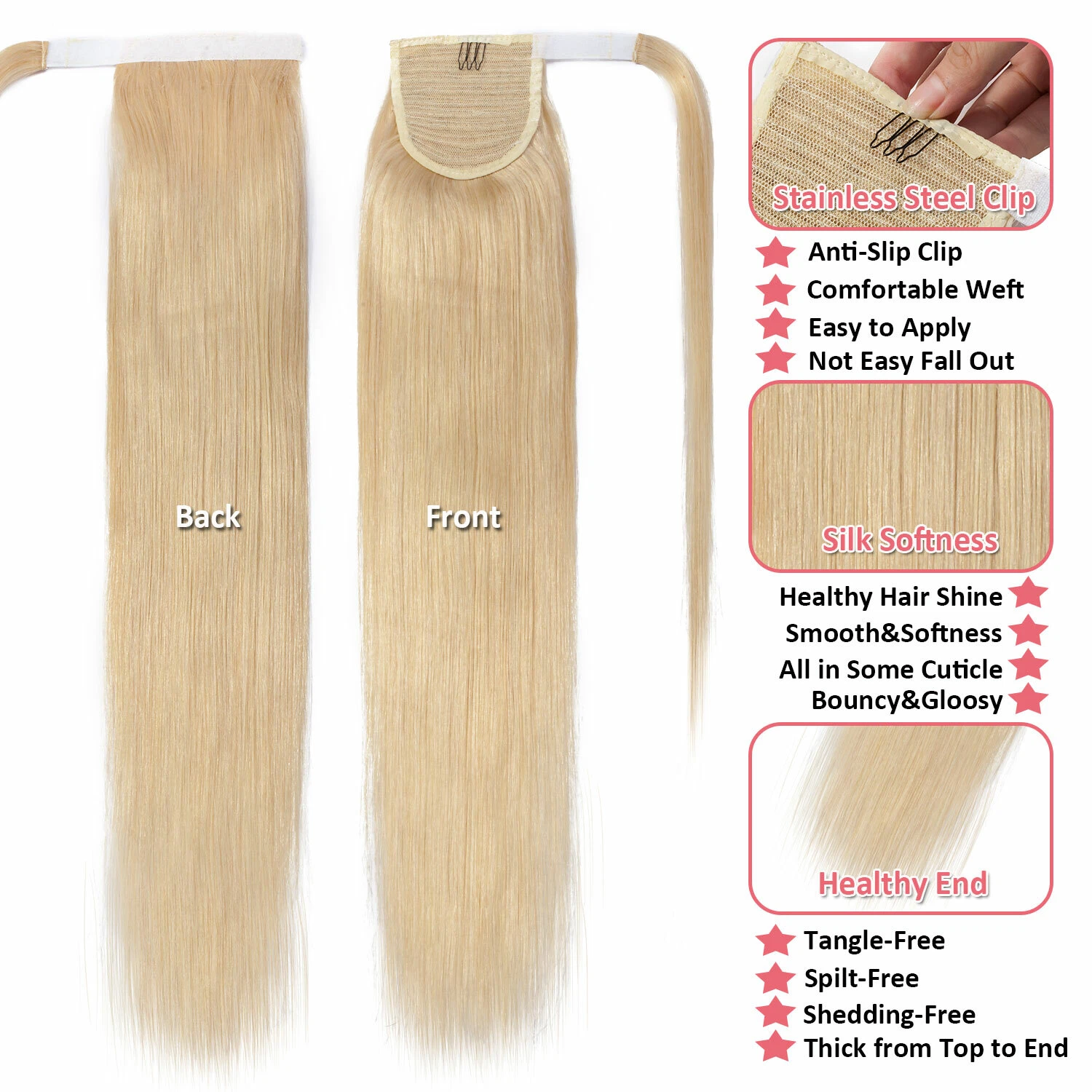 Made from premium-quality human hair, it is soft, smooth, and tangle-free, allowing you to curl, straighten, or style just like your natural hair. The secure wrap-around and clip attachment ensures a firm hold all day without slipping.