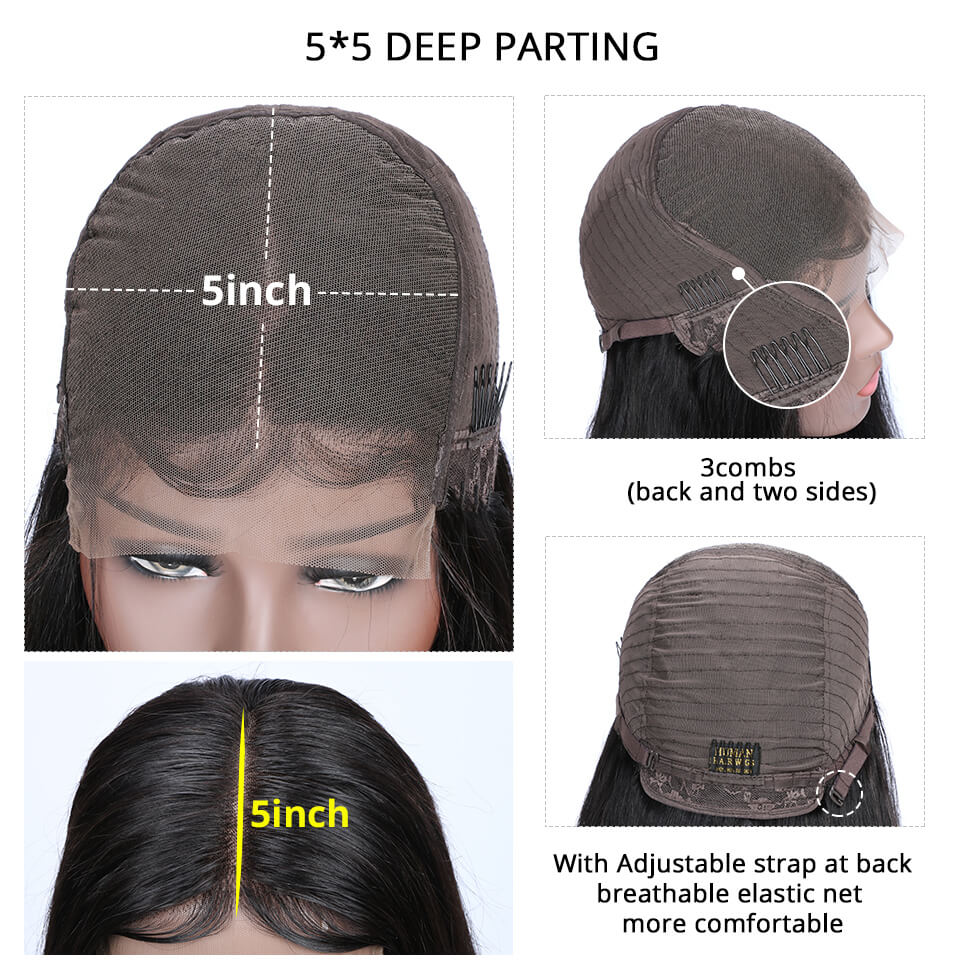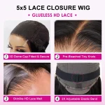 A closure wig is a hairpiece with a small lace patch (often 4×4, 5×5) that mimics your scalp and covers the top/front area of your head to give a natural parting look. It’s typically sewn into a wig cap or used with bundles for a sew-in style