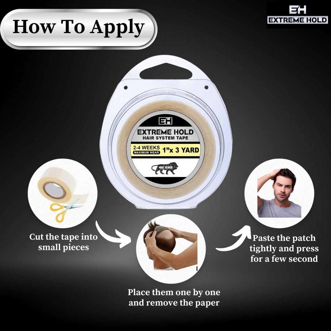 - Apply the Tape to the Hairpiece: Place the tape along the perimeter of your hair system or patch.