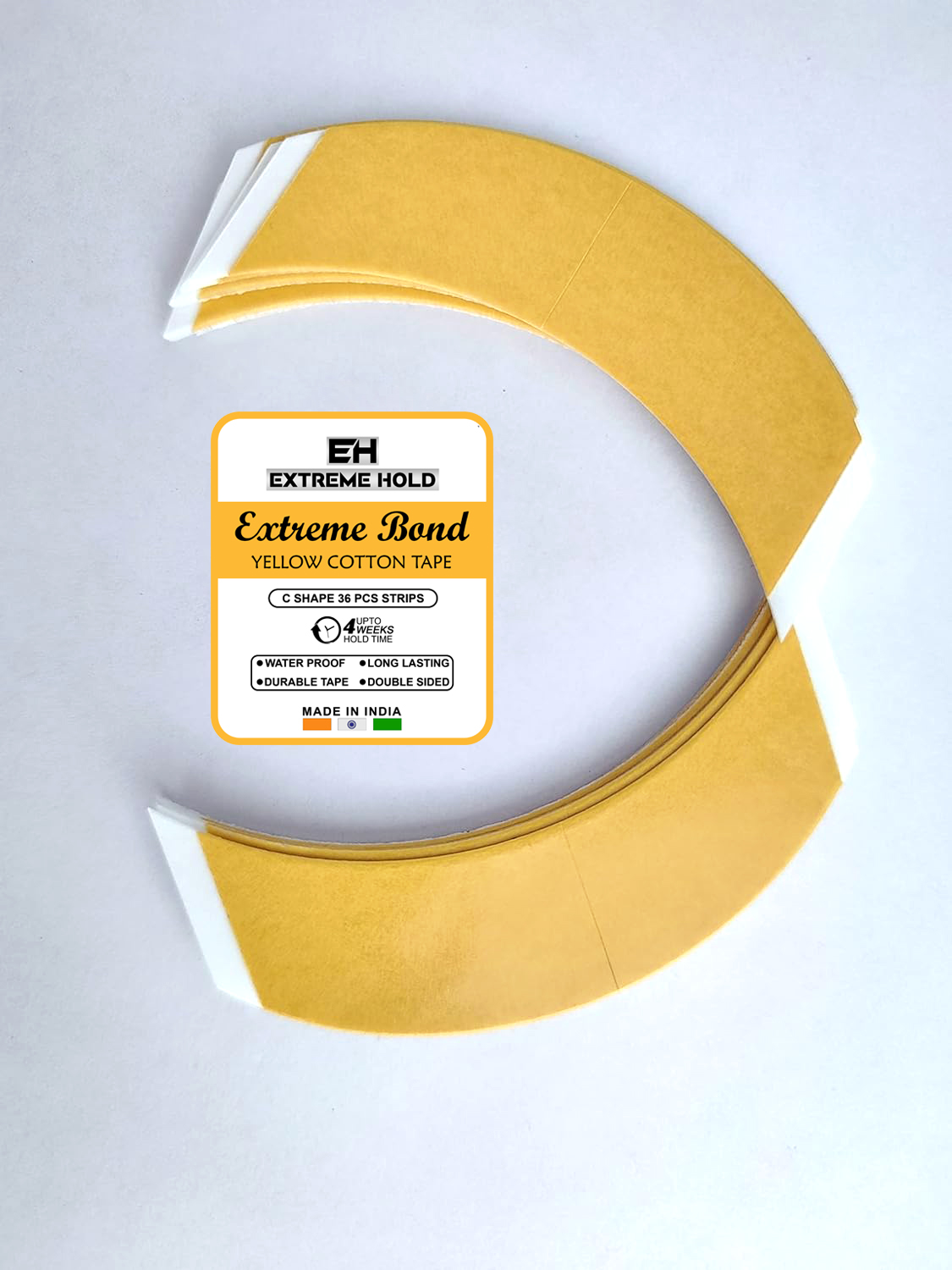 The Extreme Hold “C” Contour Cotton Yellow Tape is designed for securing hairpieces, lace wigs, and toupees, offering a long-lasting bond and durability. Here’s a detailed overview based on the product description you provided: