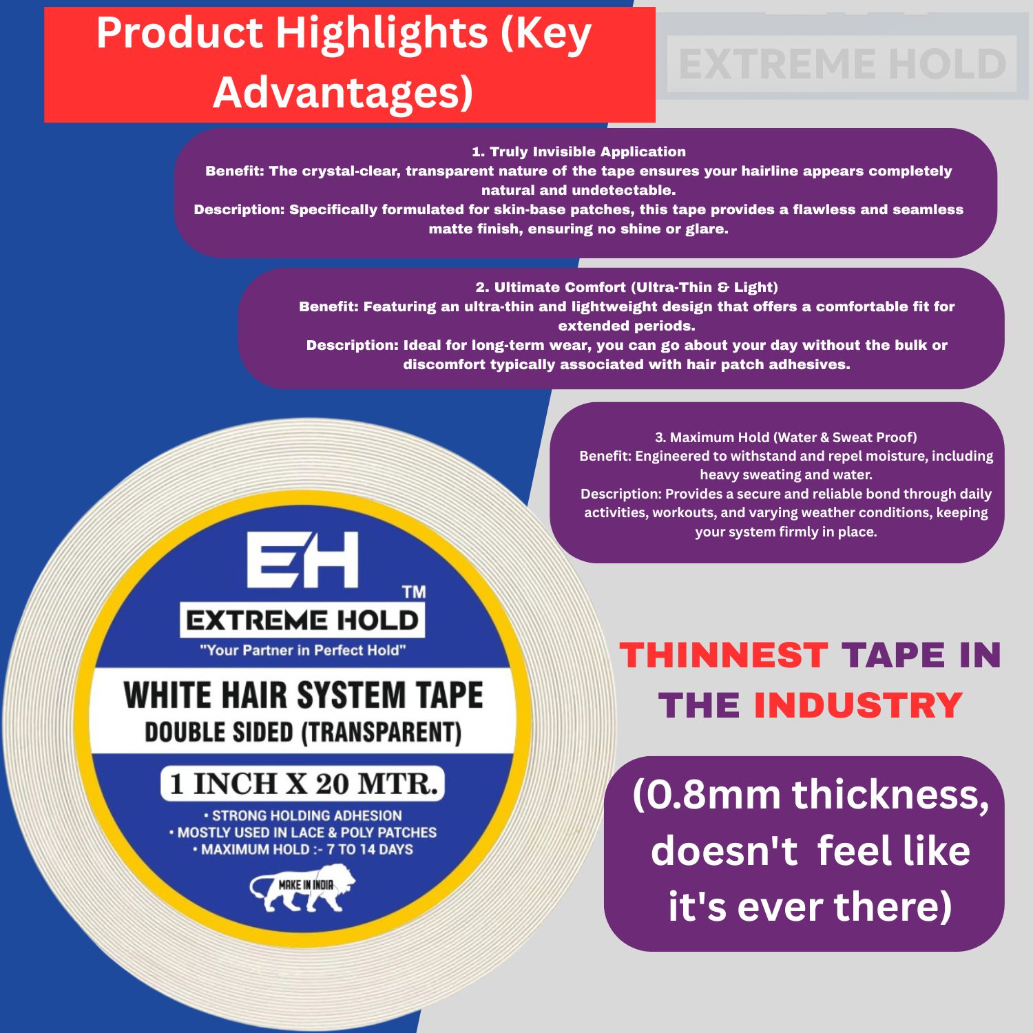 Extreme hold System Wig Tape for Patch, wig hold for man /women (20m) Hair Extension