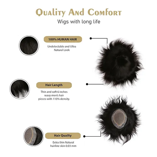 Golden Mirage 100% Human Patch Natural Skin Base Wig for Men Hair Extension