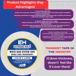 • Growth Extreme Hold Tape took the reliable bonding strength of their Growth Extreme Hold glue, which is widely used in the industry, and developed it into a tape form. This innovation combines the convenience of tape with the powerful adhesive strength of the glue.