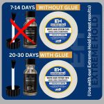 • Growth Extreme Hold Tape is easier to apply than liquid adhesive and offers a more convenient removal process when used with the appropriate adhesive removers.