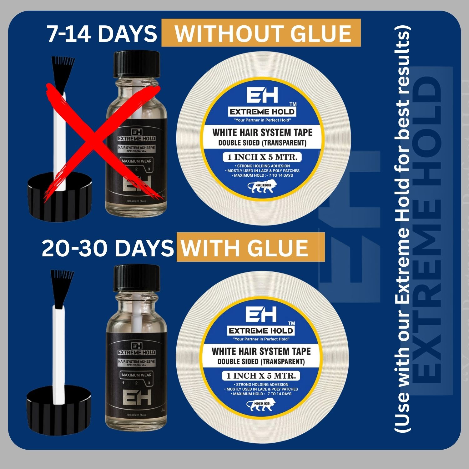 • Double-sided adhesive tape, making it versatile for bonding along the edges or entire perimeter of the hairpiece.