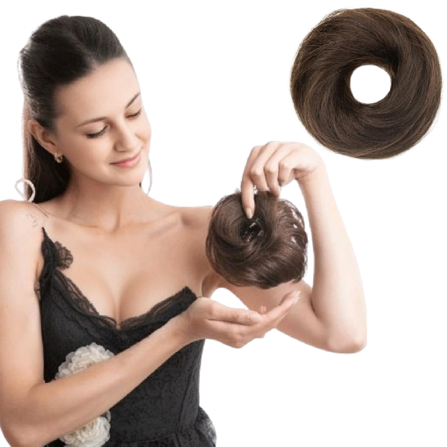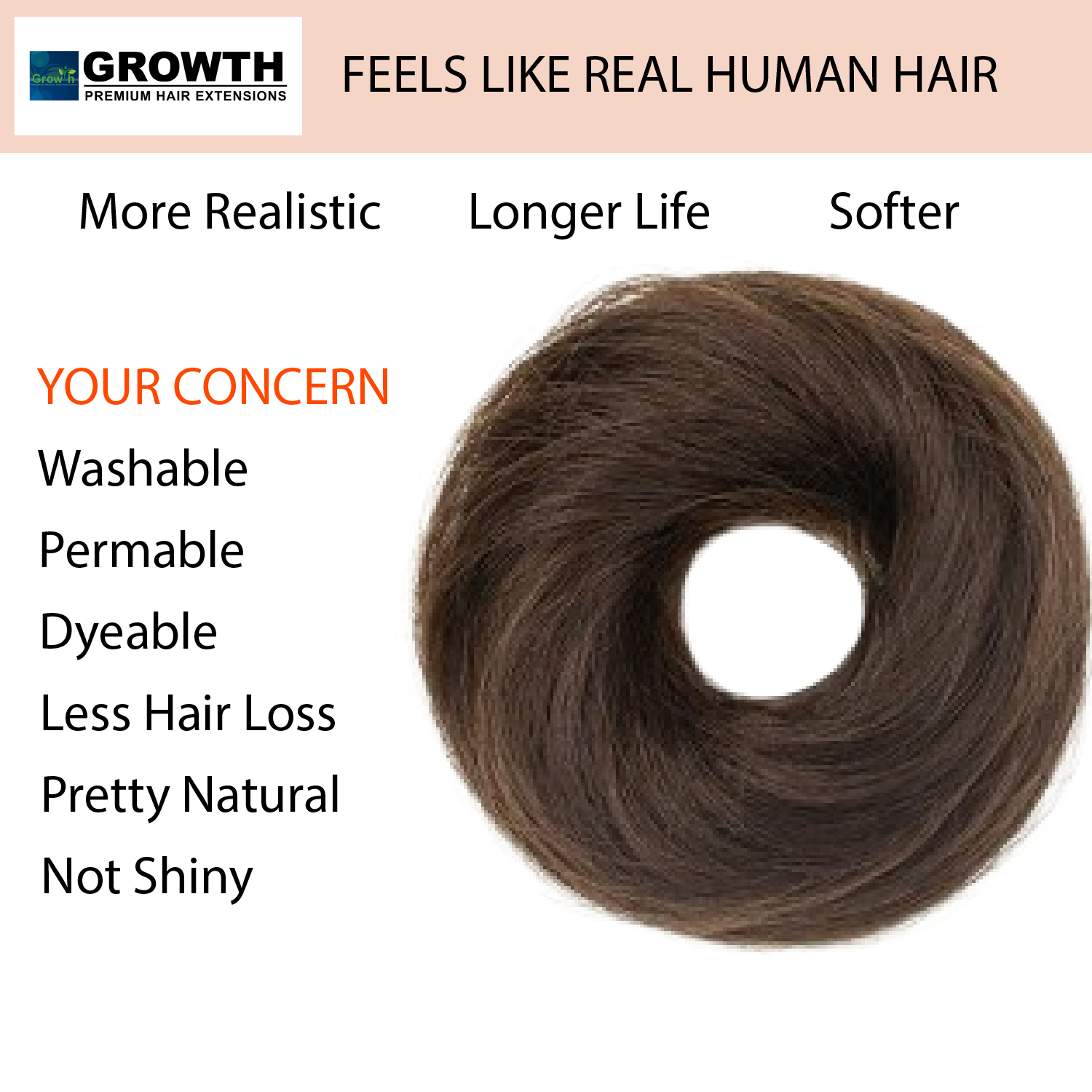 GROWTH Scrunchie Human with Elastic Rubber Straight for Women (1PC ,Natural Brown) Hair Extension