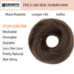 GROWTH Life is too short to have a bad hair day and we make sure you have #GoodHairDayEveryday. – Made for 100% human hair – Ethically sourced – Made for Everyday Use – Premium quality – Made by women, Made for everyone – Featured and funded on Shark Tank India Say bye to unmanageable hair and say Hello to Chic Messy Hair with 100% human hair messy bun scrunchie. -Voluminous hair bun – A quick fix for messy open hair – Turn an untidy flat bun into a gorgeous updo.