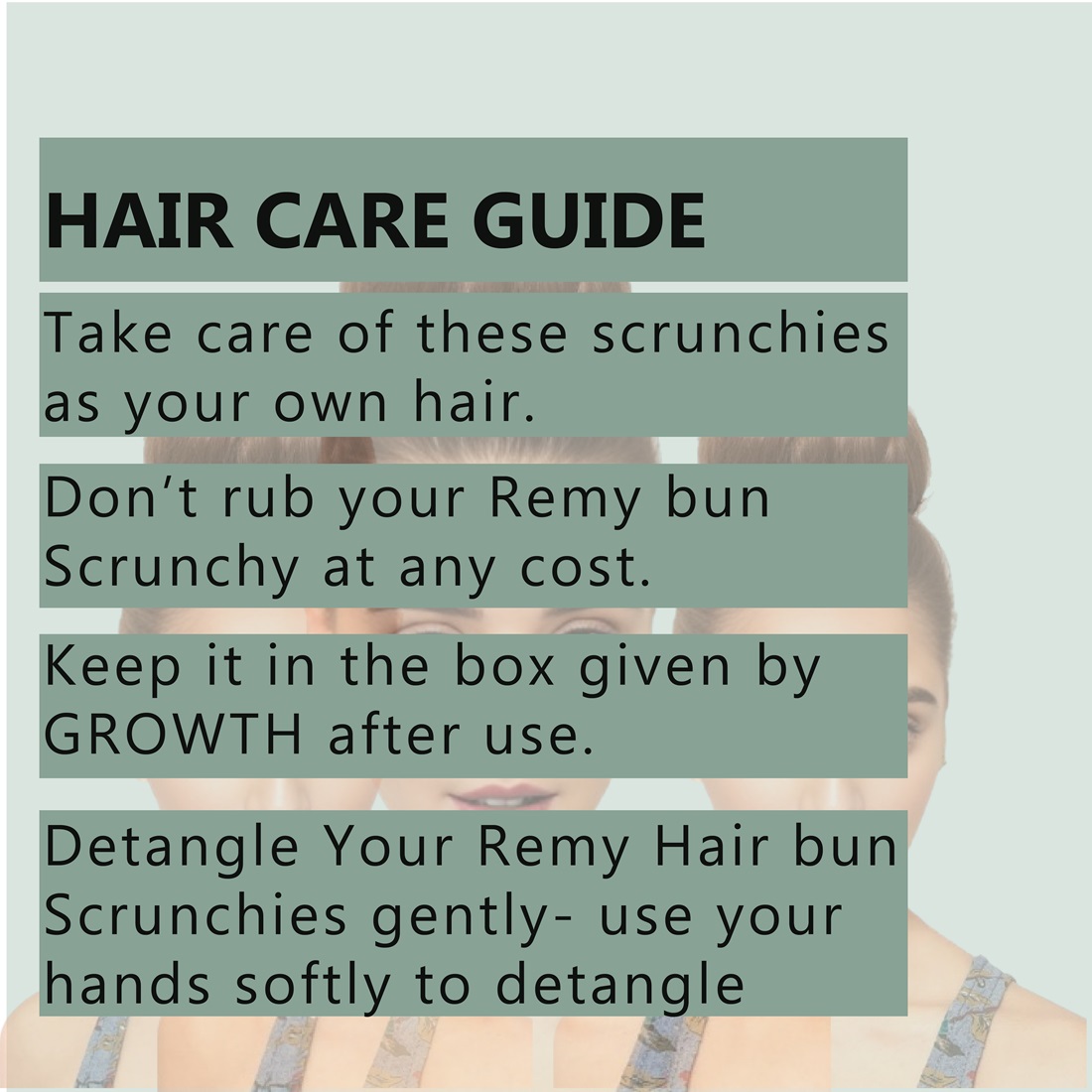 GROWTH Life is too short to have a bad hair day and we make sure you have #GoodHairDayEveryday. – Made for 100% human hair – Ethically sourced – Made for Everyday Use – Premium quality – Made by women, Made for everyone – Featured and funded on Shark Tank India Say bye to unmanageable hair and say Hello to Chic Messy Hair with 100% human hair messy bun scrunchie. -Voluminous hair bun – A quick fix for messy open hair – Turn an untidy flat bun into a gorgeous updo.