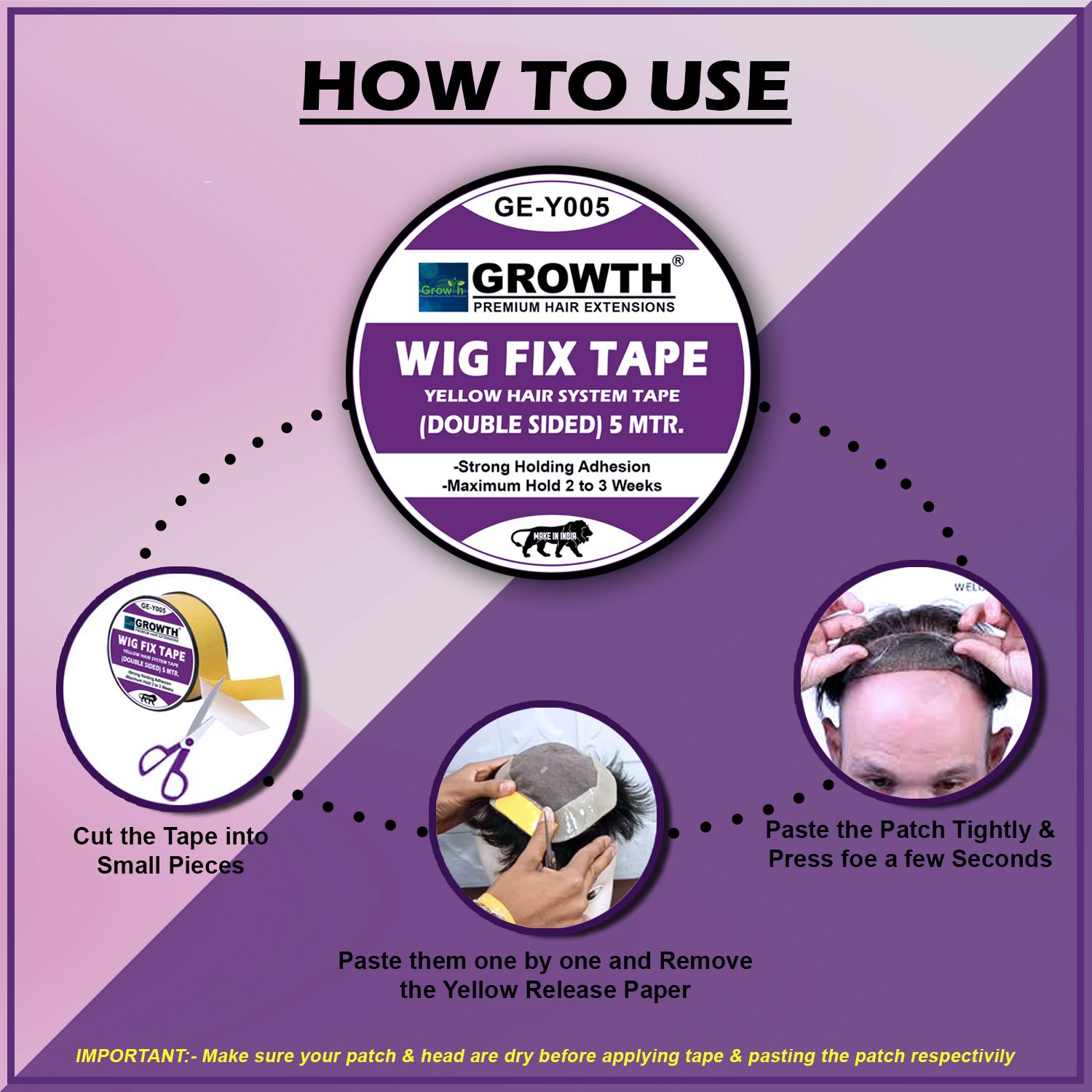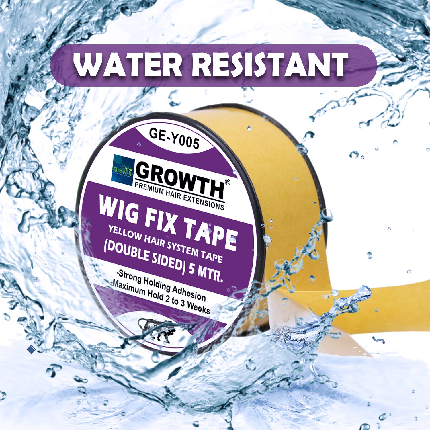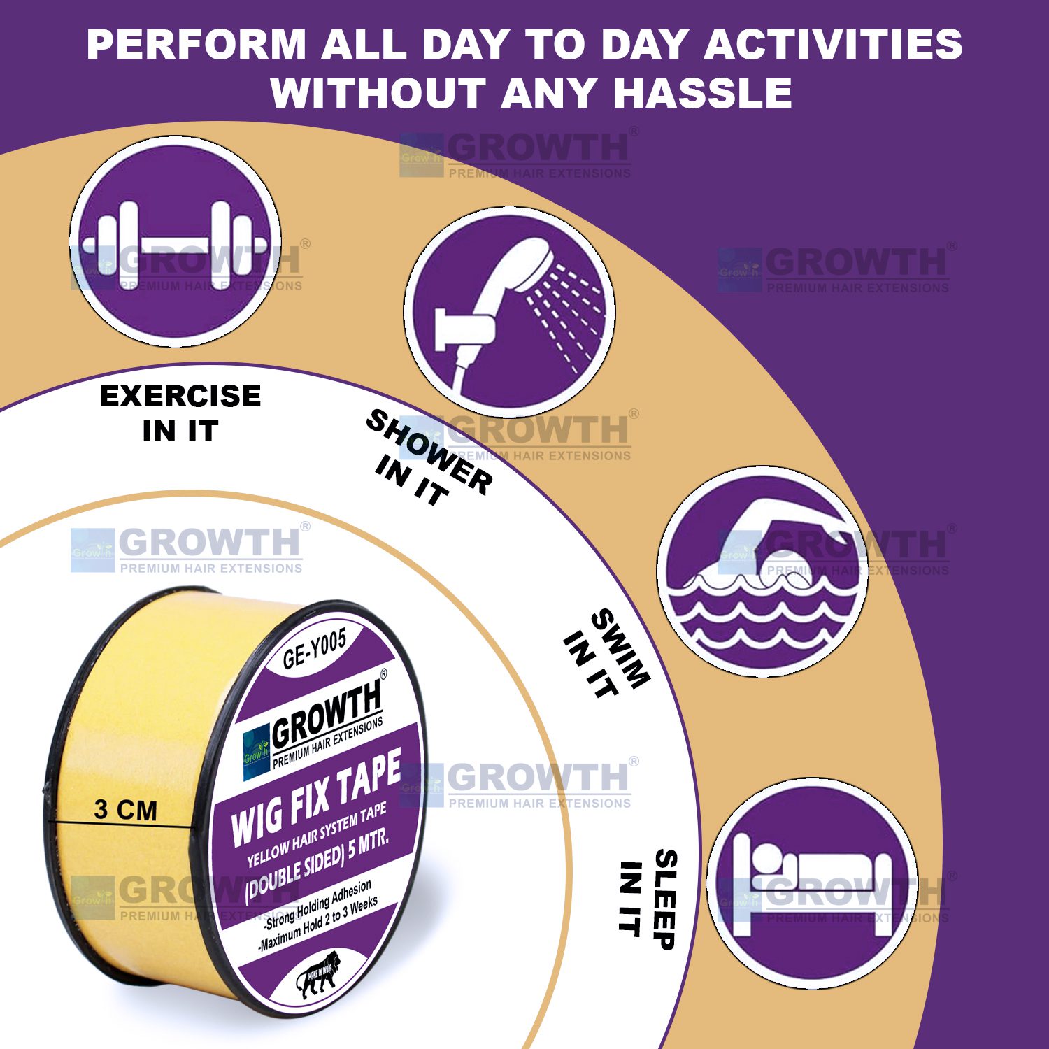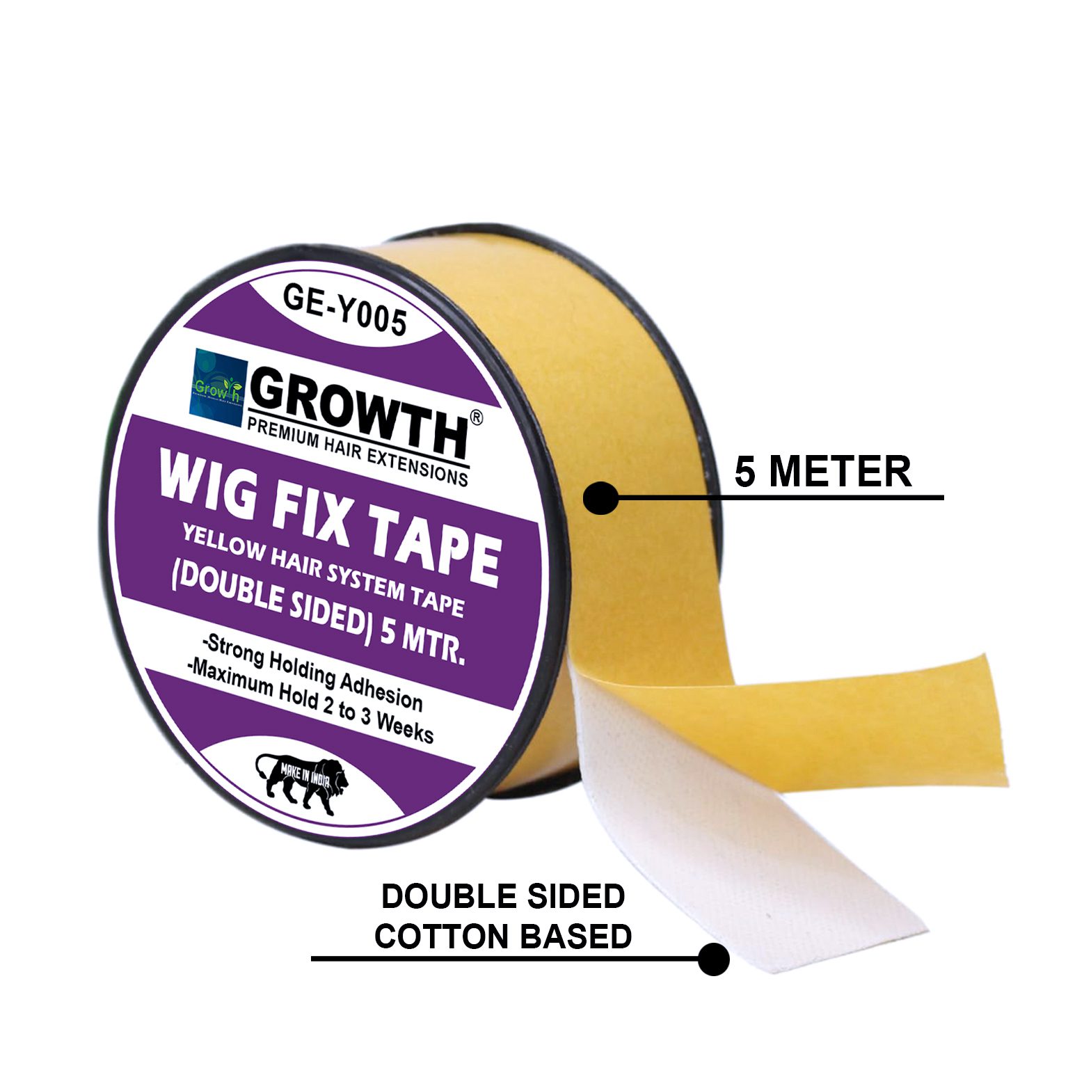 Upgrade your hair system with Growth Yellow wig Tape, the ultimate solution for a secure and long-lasting hold. Crafted from 1-inch cotton material, this 5-meter double-sided tape ensures your hair patch stays in place no matter the conditions.