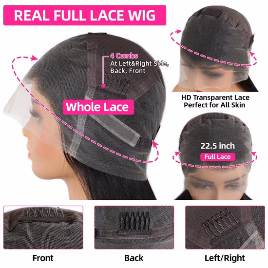 Human Hair Full Lace: Highest realism and styling versatility (can be heat-styled, dyed). Remy or virgin hair options are popular.