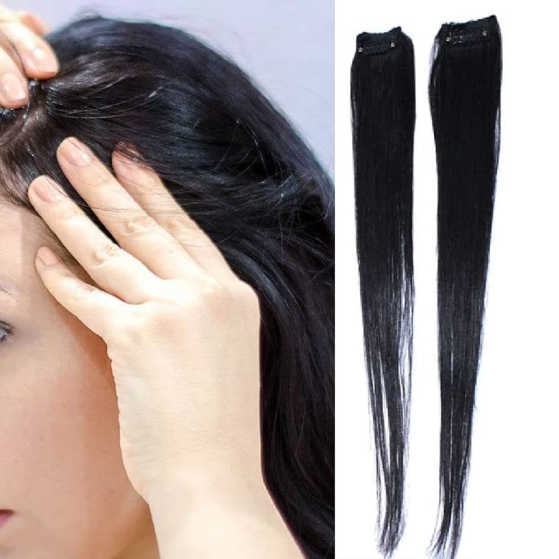 Double Clip100% Human Extensions/14" Streaks For Women and Girls, Pack Of 2 Hair Extension