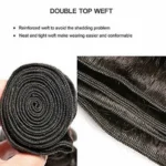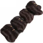 Weft bundle human hair extensions are a popular type of hair extension that comes in a bundle of hair strands sewn or glued together along one side (the “weft”). They are typically made from 100% human hair, which makes them durable, natural-looking, and versatile for various styling options.